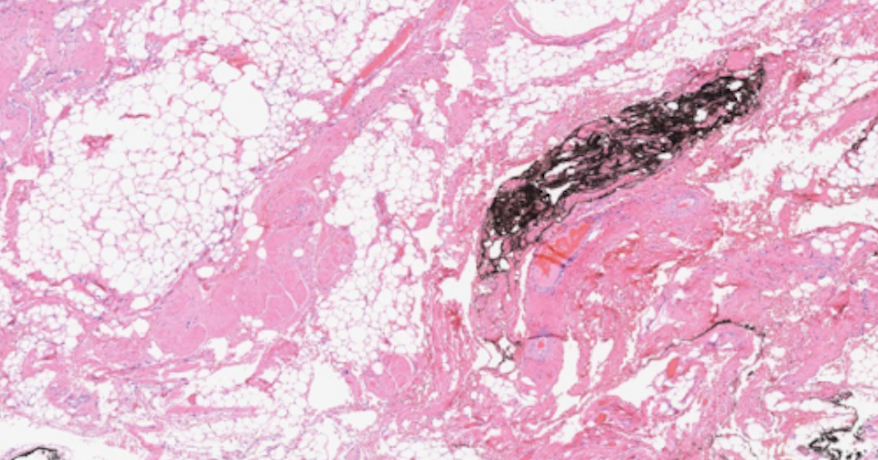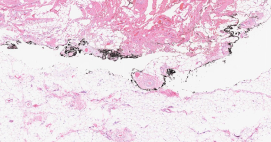 Breast, left, upper central, spotligh clip (BRSSL RMS23-02617/ A1-3, A2-3, A3-2; 3 SLIDES): 3/28/2023